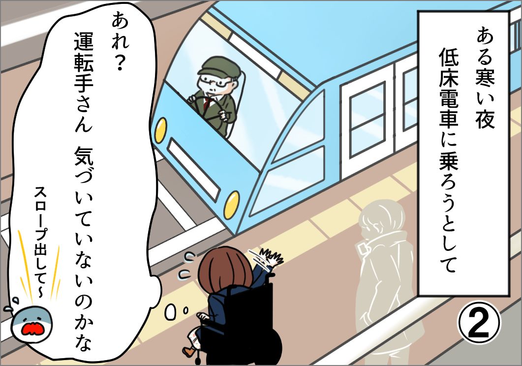 車いすの人が居ないか乗るか乗らないか、運転手側で少し気にかけてもらえたら有難いなと思います。